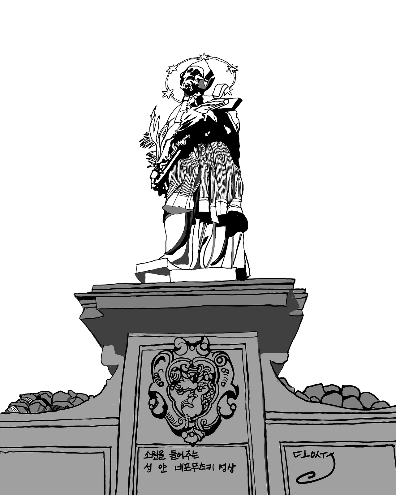 까를교에 있는 30개의 성상 중 가장 인기 있는 성 얀 네포무츠키 성상에 손을 얹는다. 소원을 빌면 이루어진다는 전설이 있으니 나도 소원을 빌어본다. '내가 오길 오래오래 기다려준 너에게 감사해. 그리고 무탈히 완주하길 빌어줘'