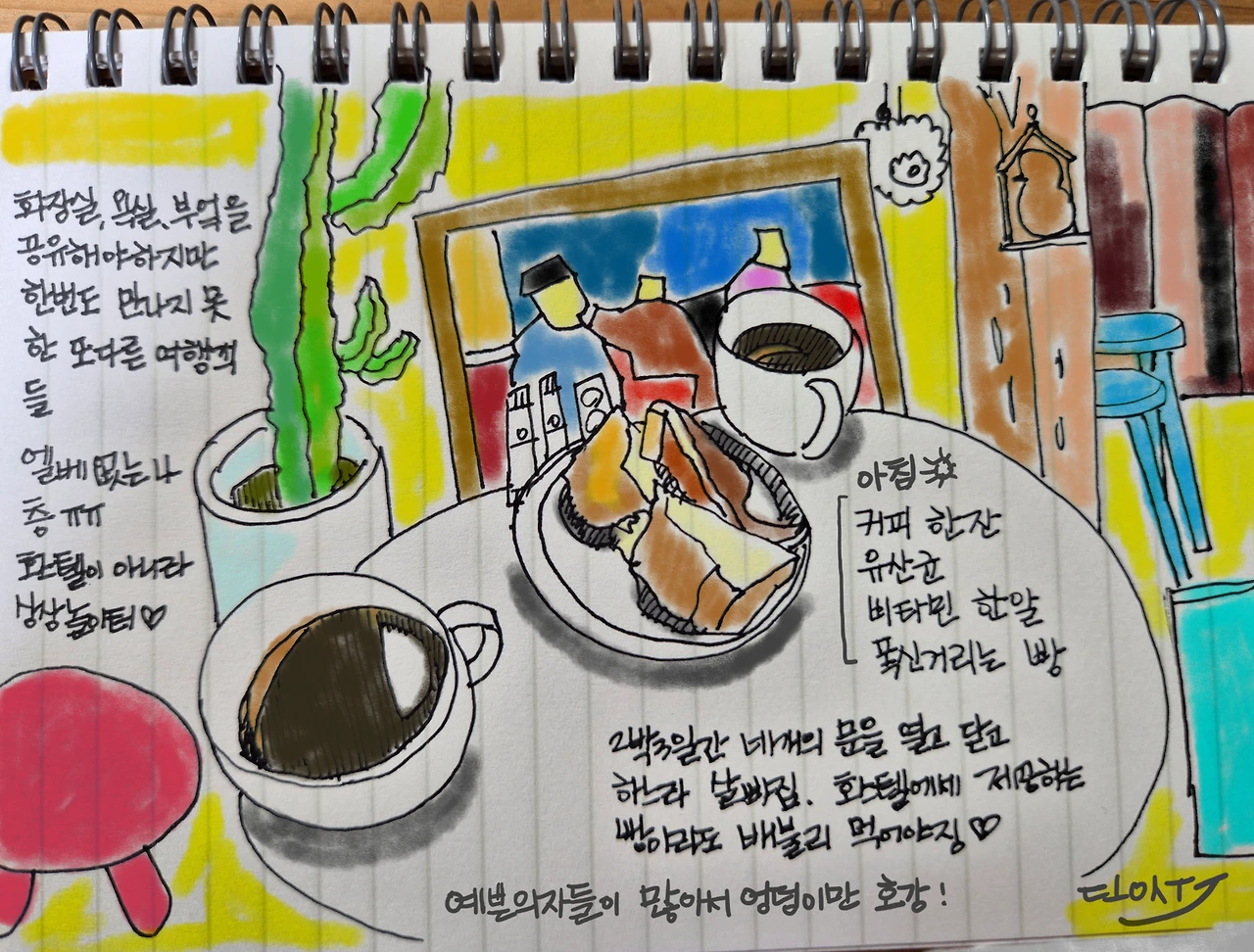 야심만만 경이로운 야경을 품느라 숙소를 들고나는 과정이 험난했을까? 네 개의 문을 통과해야 하는데 지나치게 과묵한 열쇠는 도통 입을 열지 않는다. 제대로 지칠 즈음 돼서야 딸깍 열리는 문을 드나들면서 깨달은 건 문이 마치 체코사람과 같다는 것이다. 대개 체코사람을 바게트방에 비유한 까닭을 알았던 거지.
