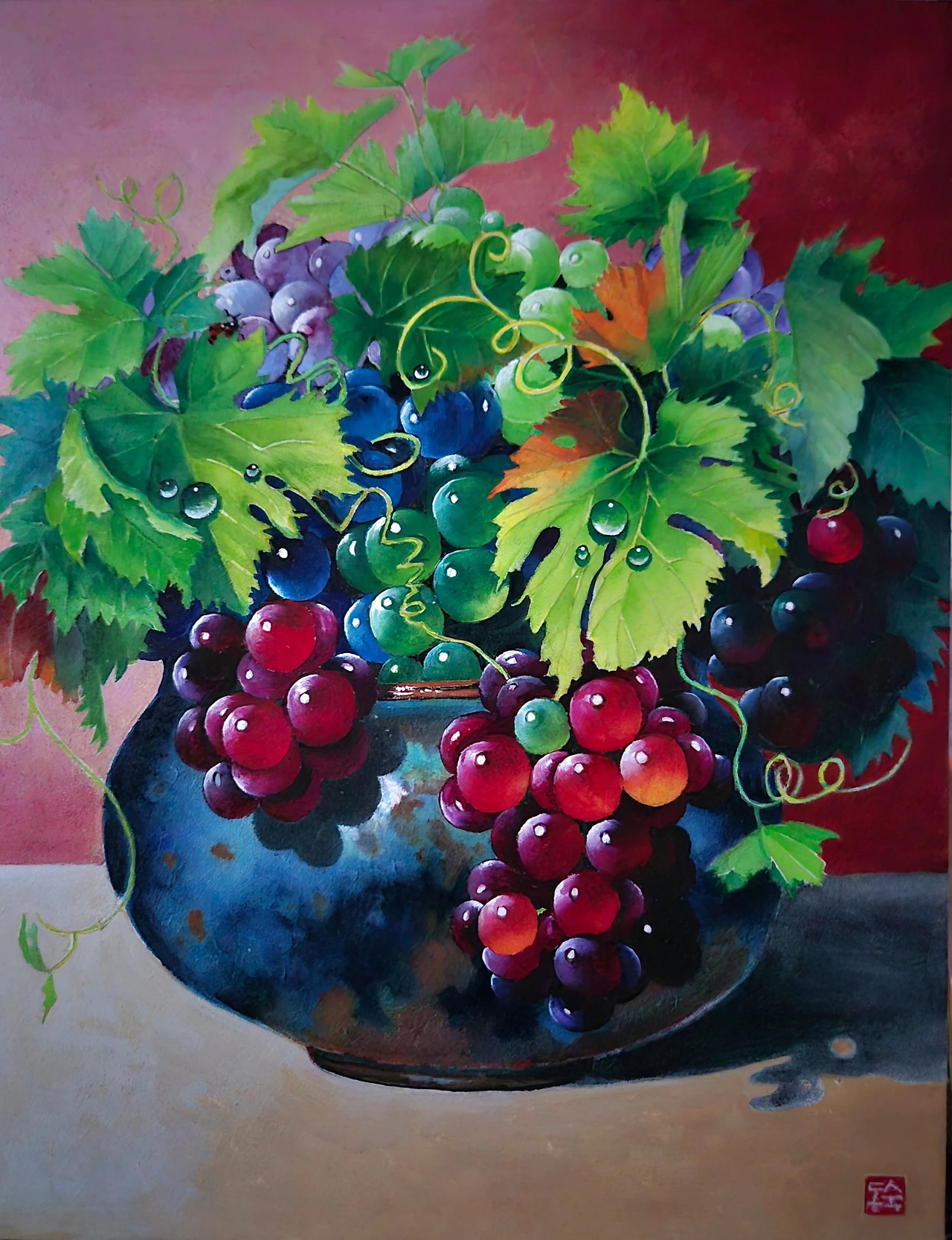 한지 위에 겹겹이 쌓아 올린 다채로운 색감은 포도 한 알 한 알에 담긴 시간의 무게입니다. 우리의 삶 또한 이토록 찬란하고 달콤한 결실이기를 바라는 마음, 그 고귀한 기다림의 시간을 한지에 담아냈습니다.