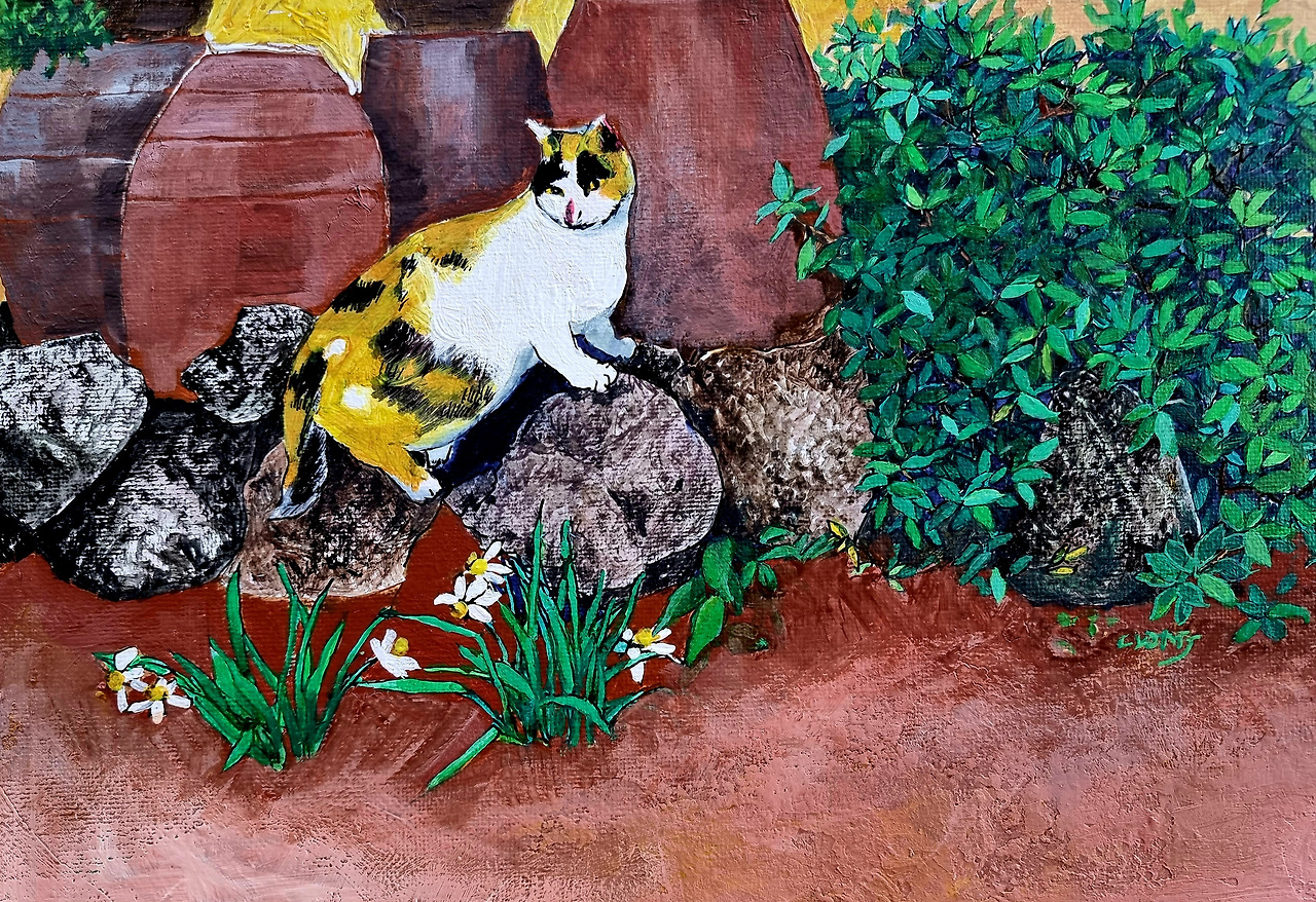 제주 삼달리 '자연으로'에서 만난 얼룩고양이/30 ×20/캔버스에 아크릴