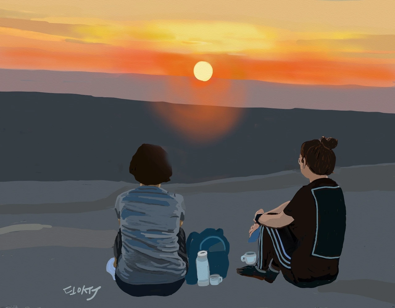 6시 39분 정확히 시간 맞춰 올라오는 정직한 태양이 얼마나 장엄한지 소원은커녕 붉은 민낯을 보여주는 것만으로도 그저 고맙다는 생각이었어요. 크로아티아 자다르에서 일몰을 함께 바라보던 하늘이와 애틀랜타에서 일출을 바라봤으니 이만하면 됐다 싶어요. 이렇게나 아름다운 일출을 보게 하려고 정오의 산길이 그렇게나 뜨거웠던 가 봅니다.