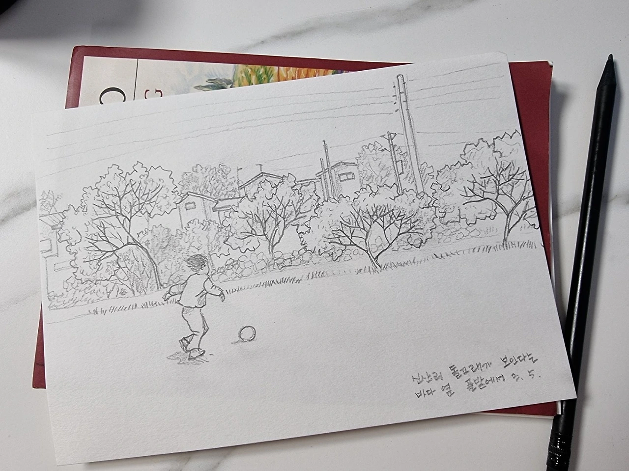 점심시간 전까지 할미와 그림을 그리거나 그림책 읽는 시간이었으나 자주 후둑이던 비 덕에 할미의 수업시간은 할아버지의 체육시간 연장으로 이어졌어요. 하루 일정이 빼곡한 참이니 그림일기로 퉁친 날이 많았단 거지요.