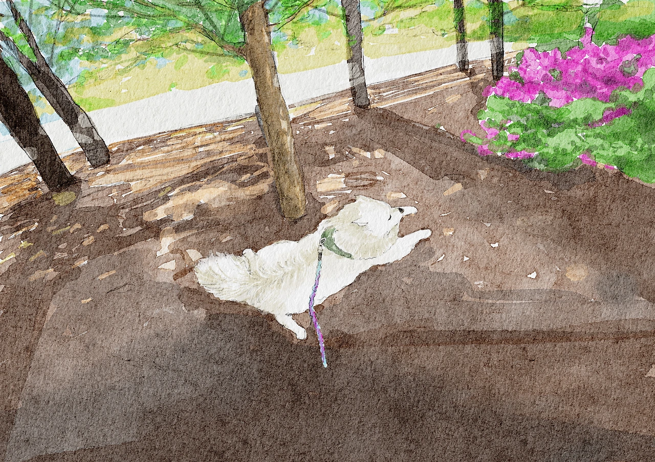 여름날에는 걷다가 나무그늘 아래만 지나가면 자주 멈춰서는것을 알기에 저 모피를 입고 얼마나 더울까 안쓰러운 마음에 댕댕이의 더위가 식힐 때까지 잠시 기다렸다.