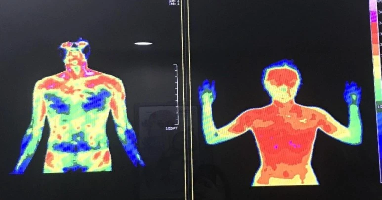 병원을 찾았을 때 나는 몸에 열이 오르고 머리로 열이 뻗치는 증상이 있었다. 아래 적외선 촬영 사진을 보면 머리를 포함한 상반신의 온도가 전체적으로 높은 걸 확인할 수 있다.
