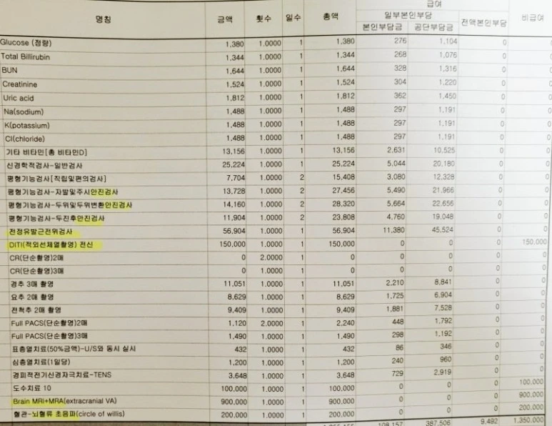 이렇게 빠르게 진행되는 부분이 2차병원의 장점이라 생각한다. 속전속결로 검사하고 결과를 볼 수 있다는 것! 그러나 신속함은 장점이지만, 비싼 가격은 단점이다. 필수적이지 않은 비급여검사를 포함하여 당일 검사비용만 100만 원이 넘게 나왔다.