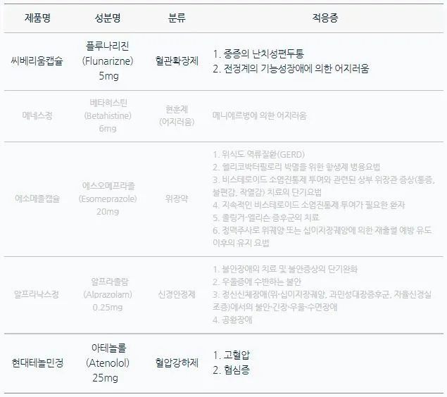 입원 시 내가 복용한 약은 아래 표와 같다.