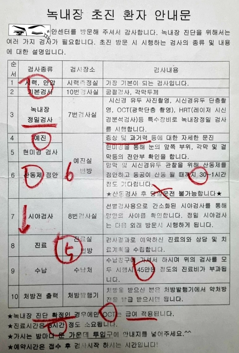 나와 어떤 할아버지 한 분을 같이 불렀는데 순번이 비슷한 사람은 모아놓고 한 번에 설명하는 것 같았다. 이 할아버지는 나와 똑같이 녹내장으로 내원하셨는데, 녹내장 검사가 처음은 아닌 듯했다.