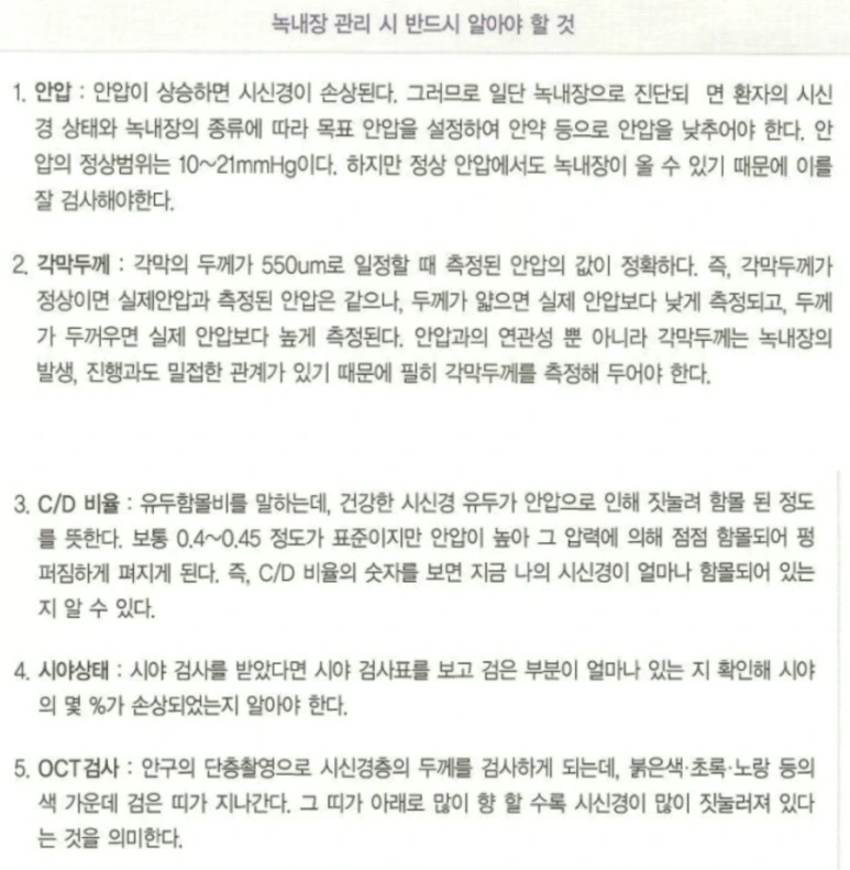 녹내장 관련 네이버 카페에서 찾은 내용이다. 도움이 될 것 같아 저장해두었다.