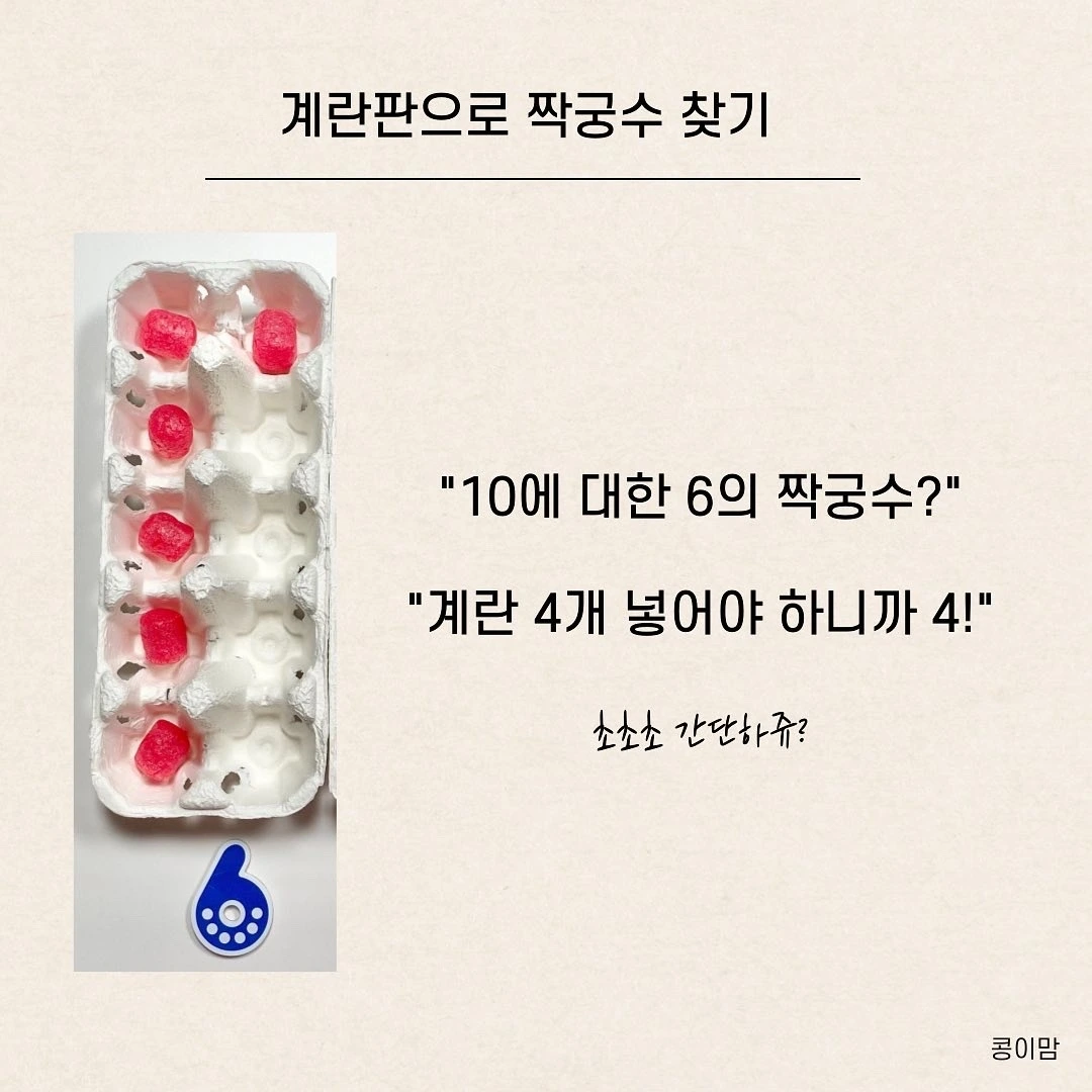 아이와 함께 10구짜리 계란판으로 짝궁수 찾기 연습을 많이 해보세요!