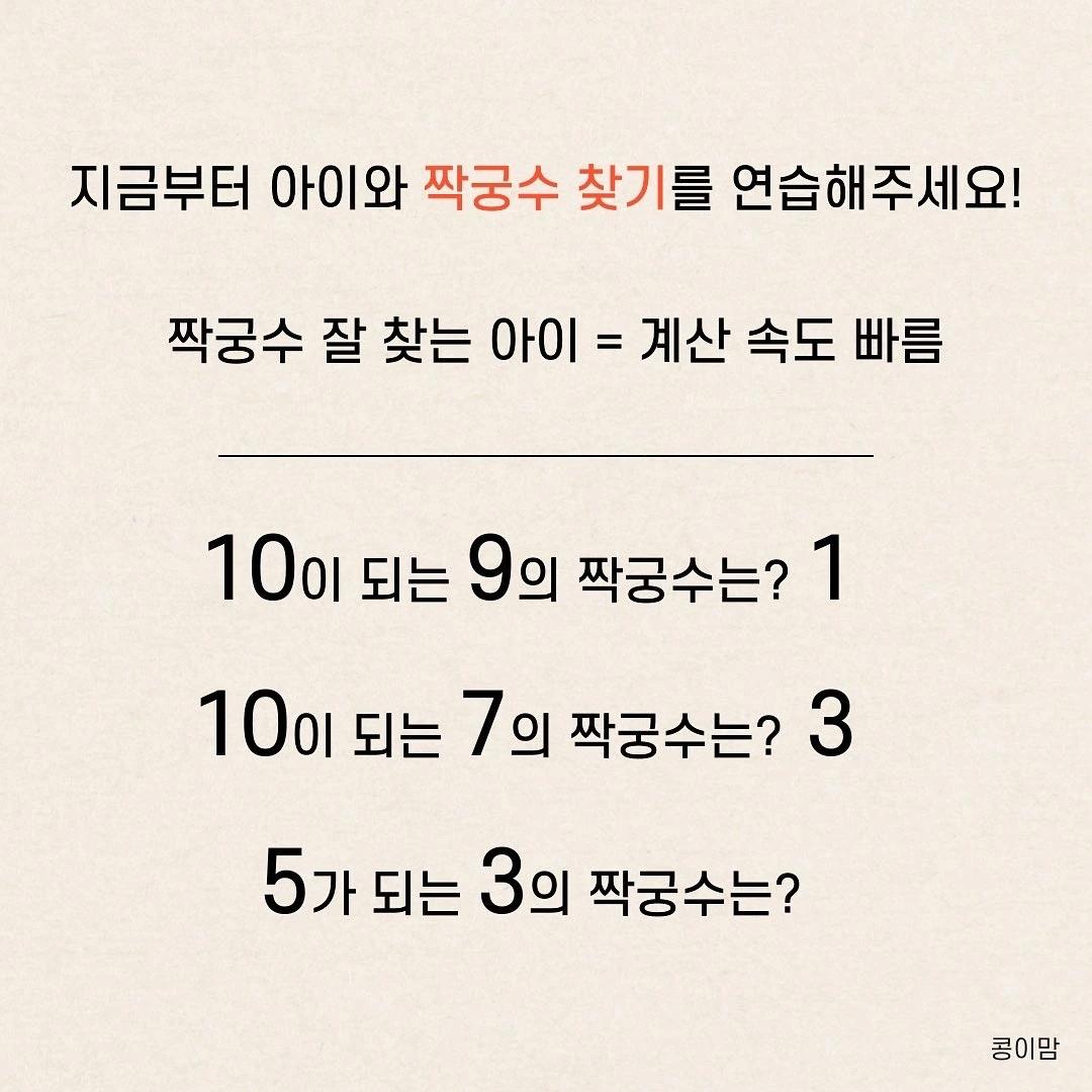 바로 ‘짝궁수’ 찾기 연습입니다.