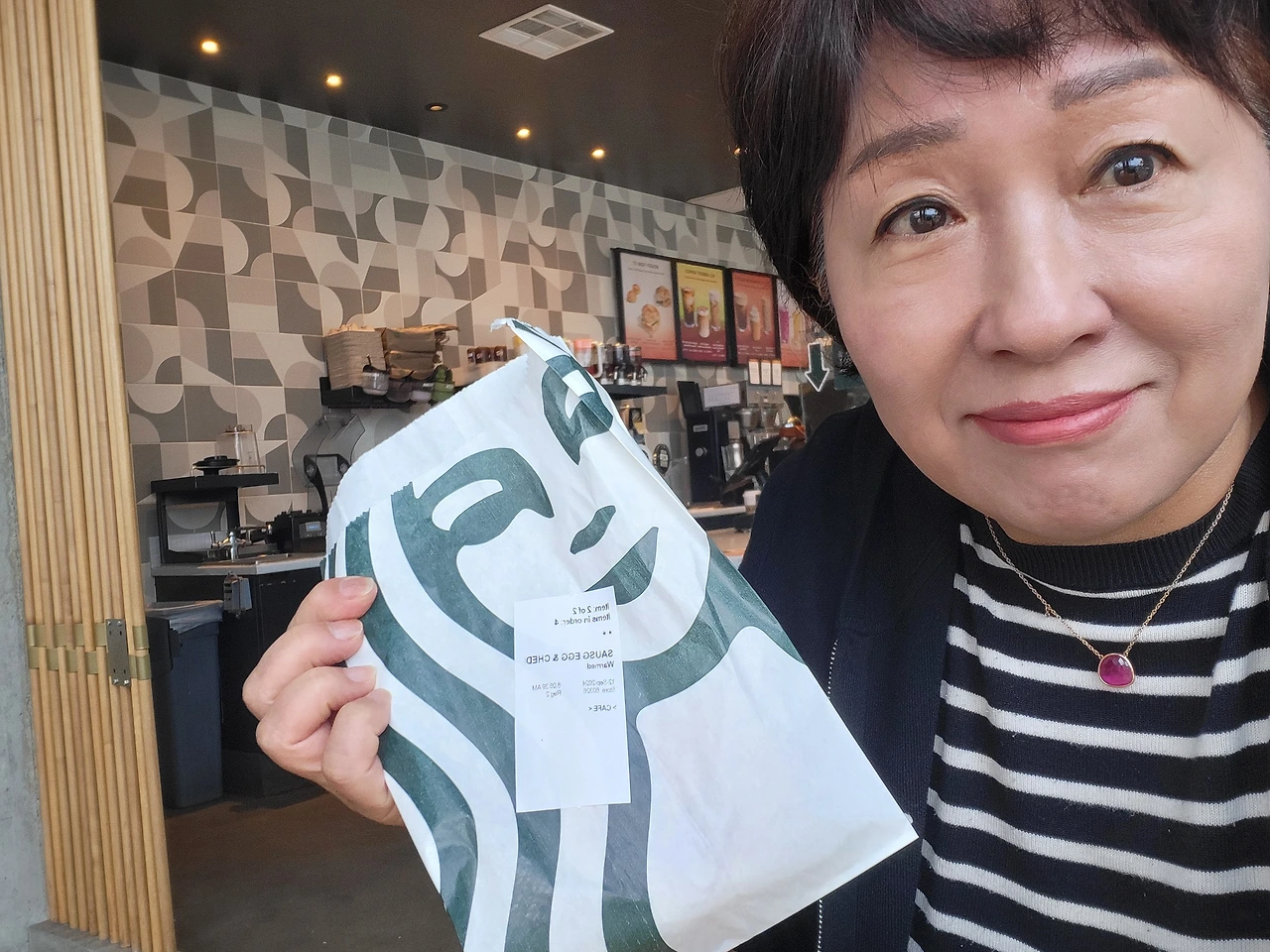 잠시 후 “킴" 소리와 함께 내가 주문한 커피를 받을 수 있었다. 여간 뿌듯한 게 아니다. 아들이 없어도 커피를 주문해서 마실 수 있지 않은가.