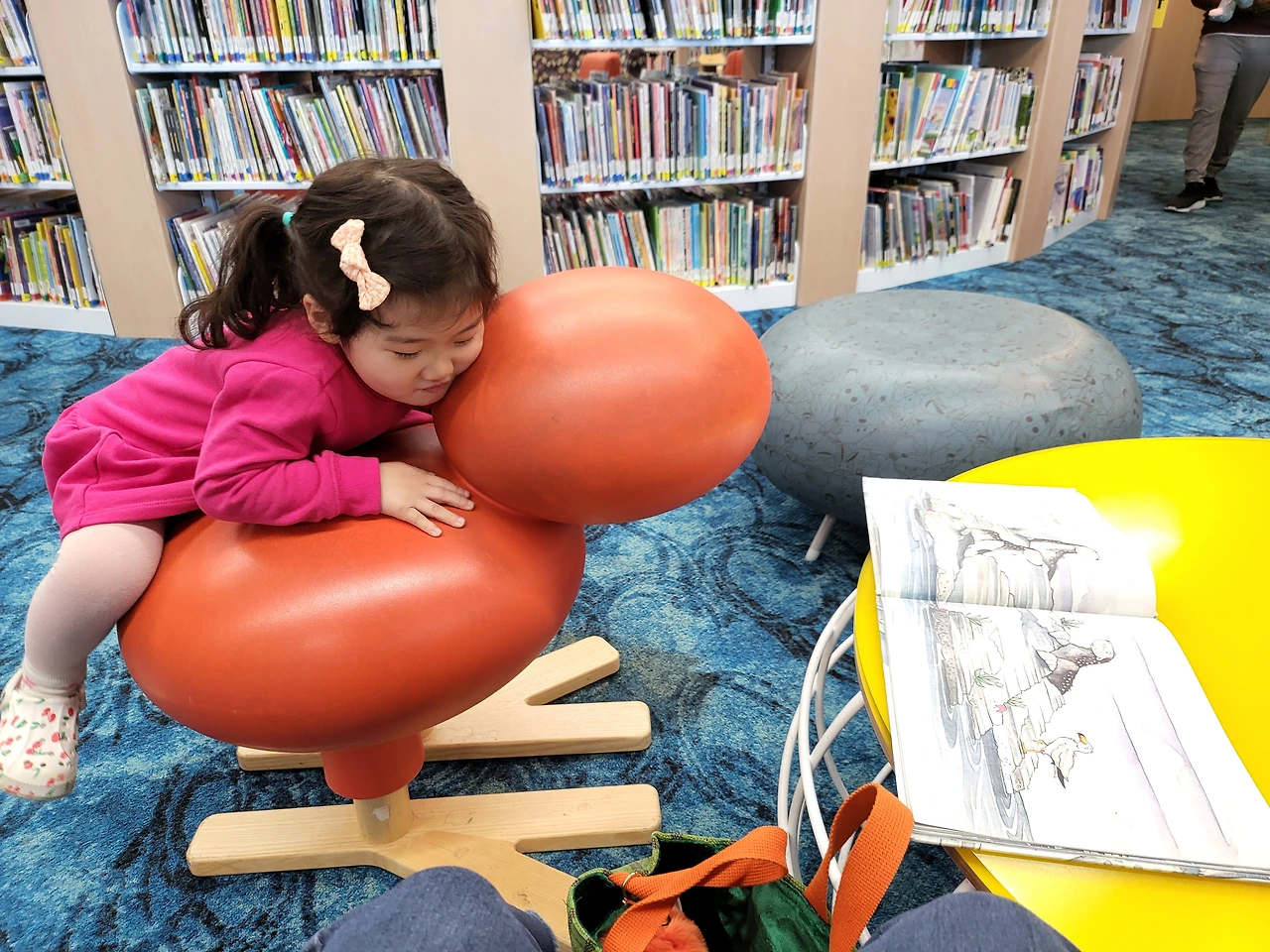 집에서 도서관까지는 차로 15분 거리. 세종시에 살 때도 도서관을 가려면 비슷한 거리를 이동해야 했다. 손주들은 걸음마를 하면서부터 도서관에서 놀았다. 책을 읽지 못하더라도 도서관은 아기들에게 좋은 놀이터다. 특히 요즘 도서관은 조용히 책만 보는 곳이 아니라 아기들과 함께 소리 내서 책을 읽거나 놀이를 할 수 있는 공간을 따로 마련해 두어 엄마들에게 사랑받는 장소가 되고 있다.