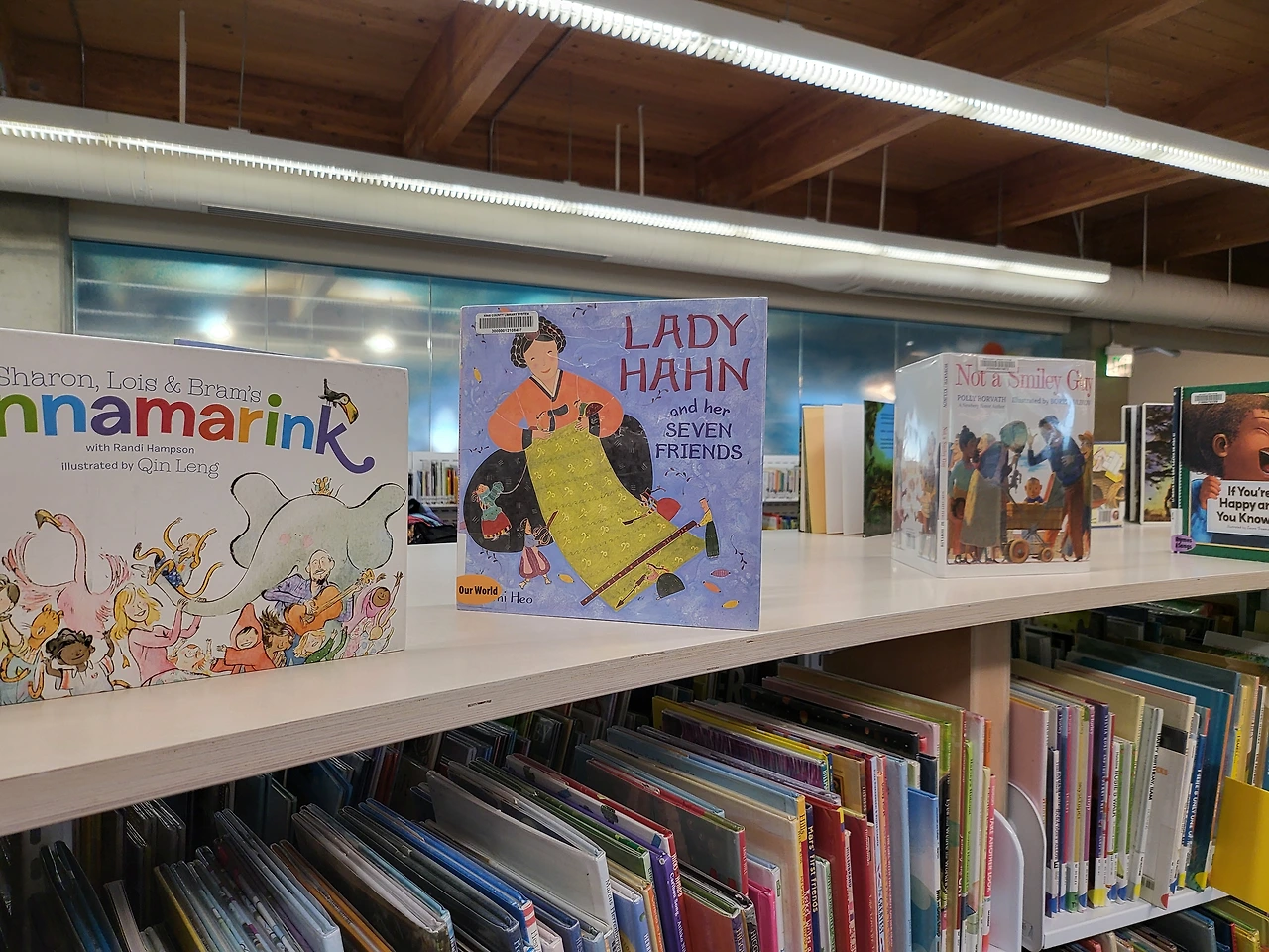 다양한 종교나 피부색, 문화에 대한 이야기를 담은 책들 사이에 한복을 입은 여성이 표지에 등장한 책이 있어 살펴보니 한국의 전통 소설 규중칠우쟁론기(LADY HANN and her SEVEN FRIENDS)다. 나도 모르게 뿌듯함이 밀려온다.