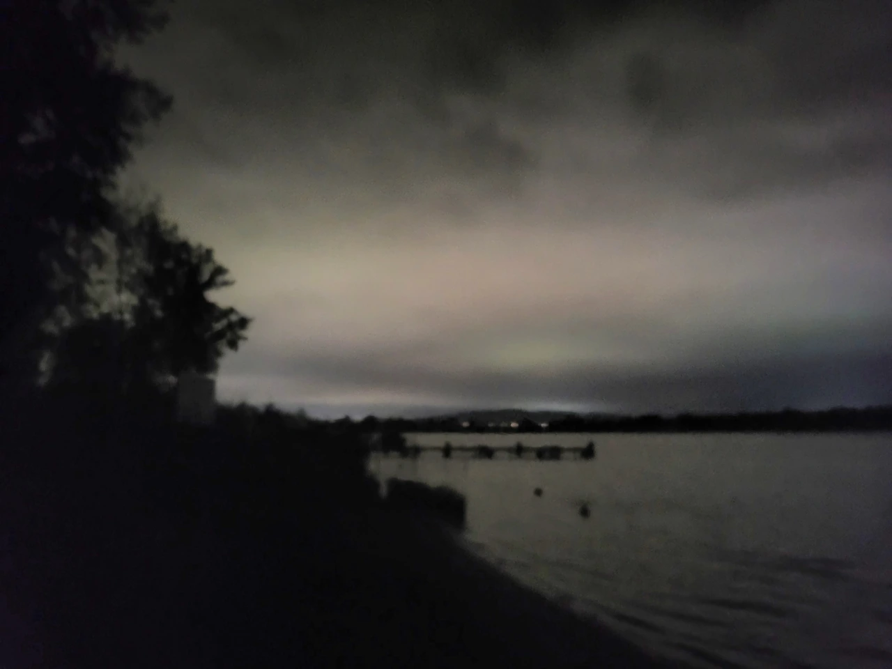 사람이 오던 쪽으로 걷다 보니 발에 물이 찰랑. 물웅덩이였던 모양이다. 생각해 보니 길은 좀 더 오른쪽이었던 것 같다. 그렇게 어둠 속을 더듬어 걷다 보니 호수가 보인다. 아이들우드 공원은 커다란 호수를 끼고 있는 공원이라 오로라를 보기에 적당하다고 생각했다. 물가에 도달하니 반갑게도 서너 명의 사람들이 보인다.