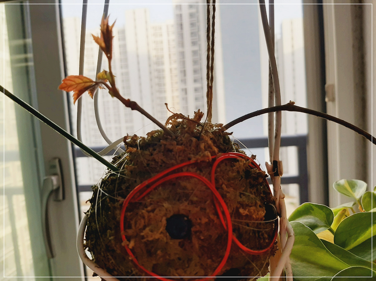며칠 동안 몸살로 골골거리다가 문득 베란다에 매달아둔 이끼볼을 보았다.