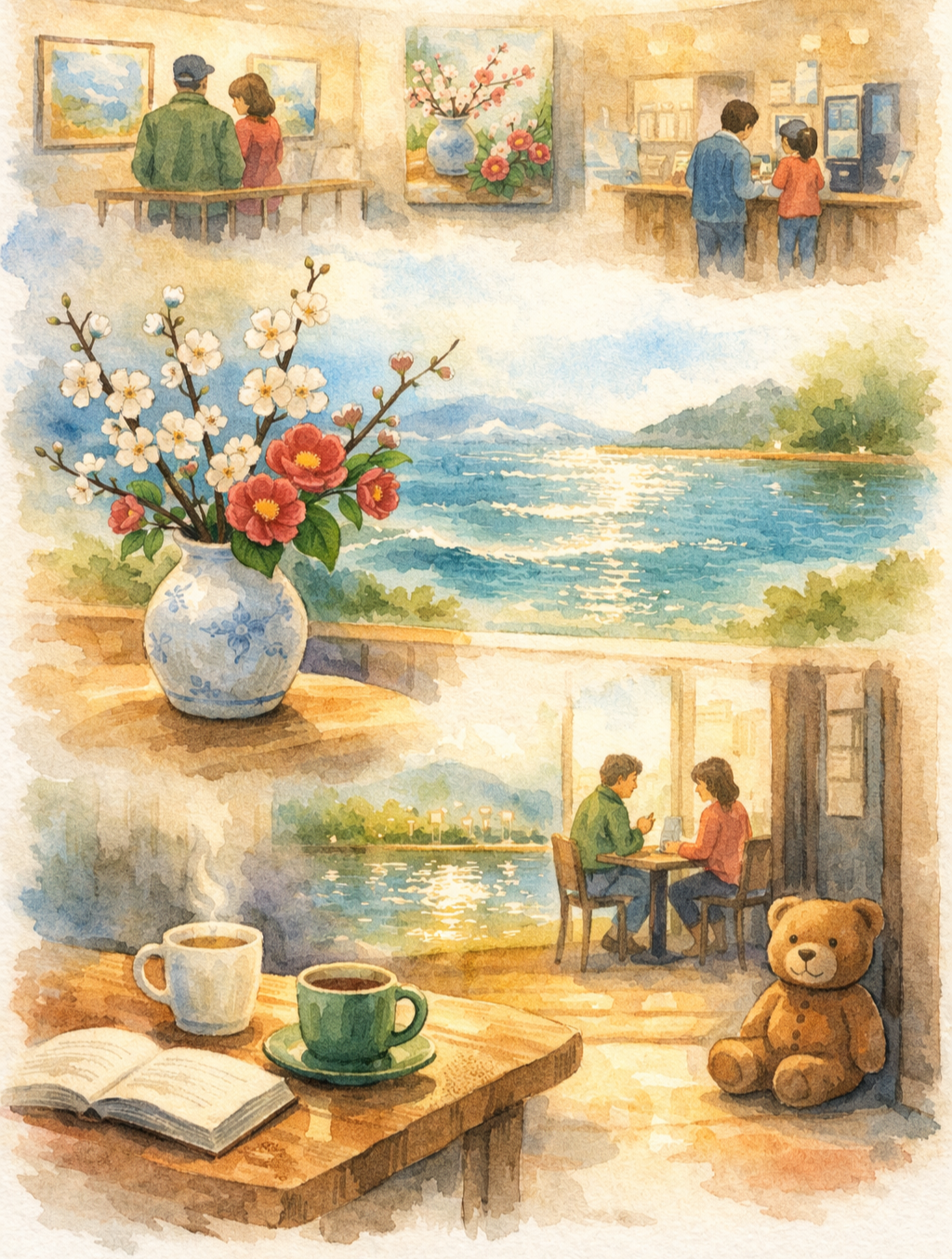 그림 감상을 마치고, 우리는 방명록에 서명을 하고 카페로 향했다.