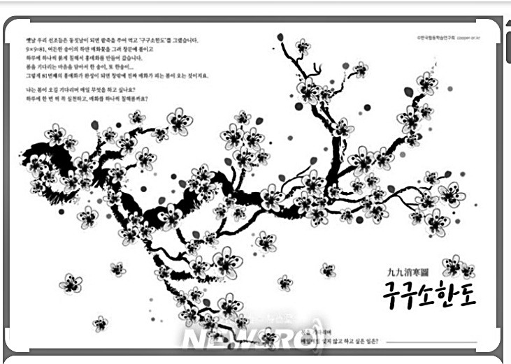 '구구소한도'는 명나라 유동이 쓴 '제경경물략'에서 나온 말로 이것을 구구소한(九九消寒)이라고 했다. 구구팔십일, 81일을 하루하루 끄면서 추위를 밀어낸다는 의미로 81개의 추위를 꺼야 매화가 핀다고 한다. 매화를 그리고 동지를 기점으로 매일 하나씩 색칠하다보면 봄이 온다니! DJ의 설명을 듣다보니 선조들의 지혜에 새삼 탄복했다. 매일 매화를 색칠하면서 따듯한 봄을 기다렸다니 얼마나 운치있는 일일까?