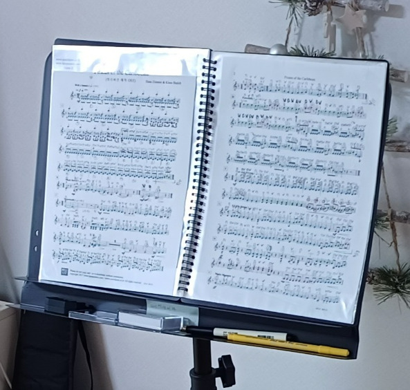 오늘도 오케스트라단과 합주를 하고 왔다. 3시간이 어떻게 흘렀는지 모르겠다. 투우사의 노래를 켤 때 못 따라 잡아 벌개졌고, 캐러비안의 해적을 얼렁뚱땅 따라갈 때 조금 창피했다. 에델바이스를 완전히 따라 잡았을 때는 울컥해서 살짝 눈이 빨개졌다.