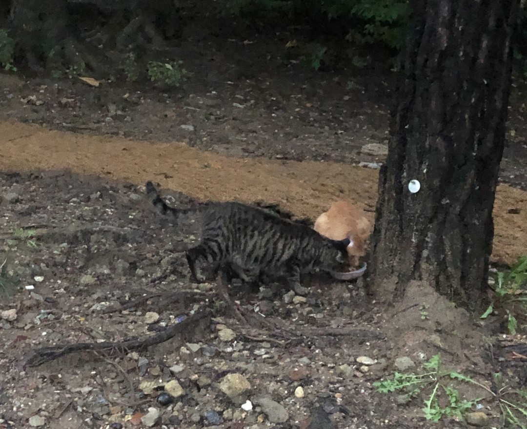 저녁마다 내가 그 음수대로 가 그릇을 씻자 나를 알아본 녀석이 음수대 주변에서 대놓고 기다리기 시작했을 터. 내가 미처 눈치채지 못했을 뿐이다. 요즘 노안이 오면서 어두컴컴한 곳에 있던 녀석들을 알아보지 못했을 게 분명하다. 내가 알아보지 못한 걸 알아차린 치즈 냥이 녀석이 실력 행사에 들어간 게 아마 소리지르며 부르는 행위로 나타난 게 아닐까?
