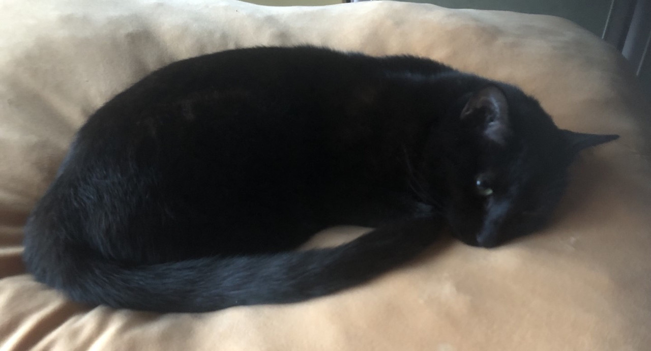 원하던 간식을 먹은 까미는 배부른 자의 여유를 부리며 안방 침대로 올라가 자리를 잡는다.