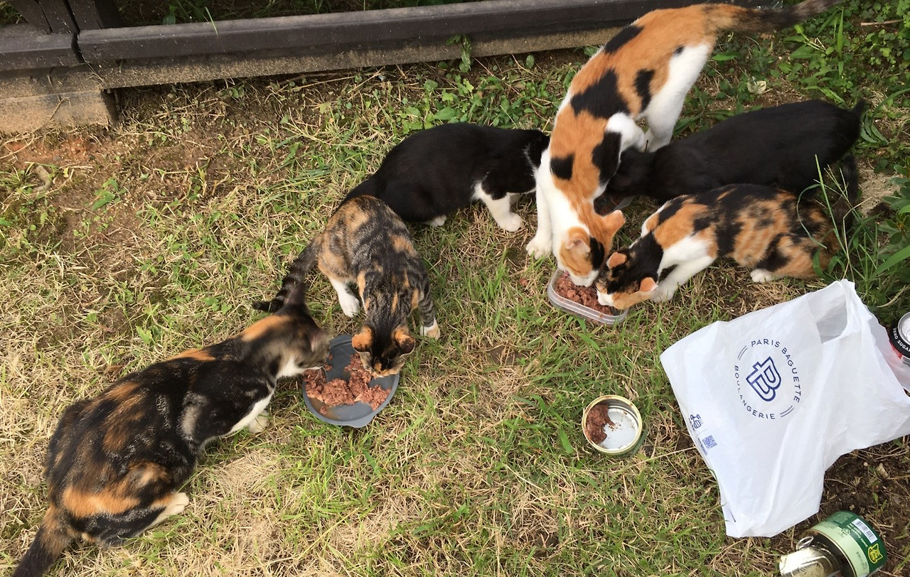 아롱이 첫 새끼는 넷이었다. 거기에 객식구 다롱이까지 한 번에 여섯을 먹이다 보니 길냥이 밥값이 갑자기 만만치 않게 폭증했다. 국내산 캔으로 양이 많고 저렴한 걸 먹였다. 그게 아롱이 가족 먹이에 대한 내 철학이었다. 여섯이 있는데 뭘 가리고 안 먹고 심지어 까탈을 부릴까? 한참 새끼들이 자랄 때는 안 먹으면 다른 애들이 다 먹어 버리니 일단 배를 채워야 할 수밖에 없었다고나 할까? 주는 대로 다 먹어치웠다.