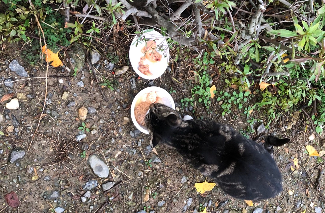 냥이들 급식은 하루 두 번. 겨울 준비 때문인지 배고픔을 못 견디는 것 같다. 주는 대로 모두 먹어치운다.