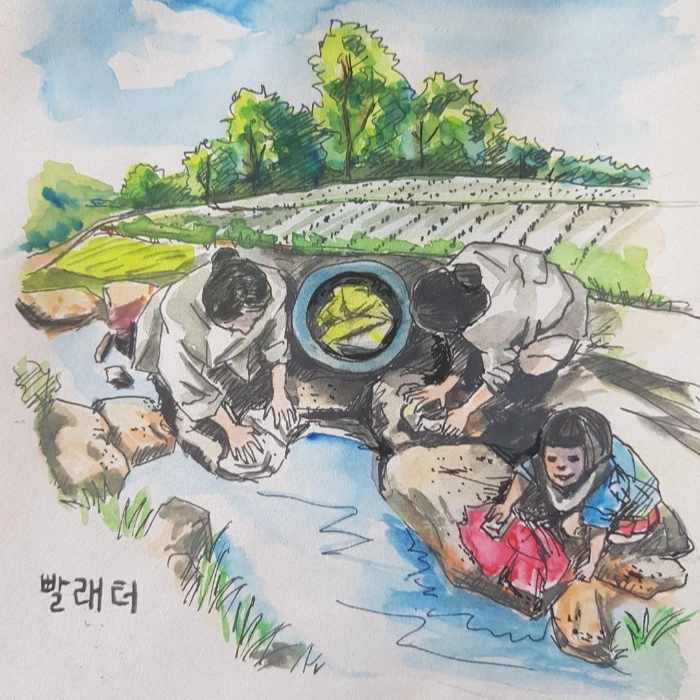 나는 시냇가나 웅덩이 주변으로 빨래를 하러 가시는 엄마도 자주 따라나섰다. 내가 엄마의 껌딱지였음을 부인하지는 못한다. 우물에서 두레박으로 물을 퍼내 빨래를 하기에는 대식구의 빨래가 만만치 않았다.