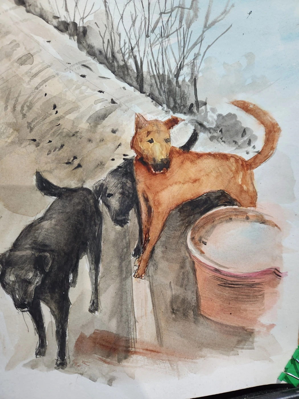 내 그림자만 어른거려도 녀석들은 뭔가를 바라는 시선으로 자꾸 쳐다봤다. 내 움직임에 민감하다 못해 집요할 정도였다. 개들의 간식을 아무 것도 준비하지 않은 나를 탓하는 느낌이 다 들었다. 이제 고양이들만이 아니라 개들 눈치도 봐야 하나?
