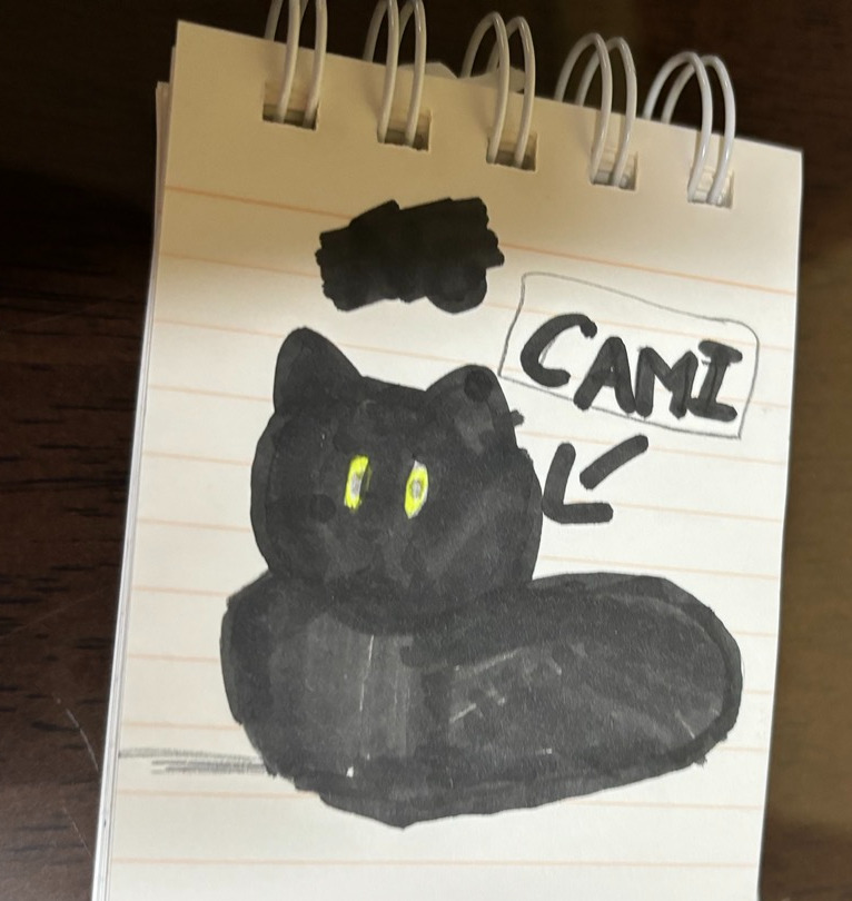 퇴원하고 하루 더 우리 집에 묵는 그 사이에도 작은 수첩을 꺼내 그림을 그렸다. 한나가 그린 까미를 보고 우리 가족들은 모두 웃음을 터트렸다. 그림 속 까미 눈동자를 자세히 보면 살짝 겁을 내는 게 엿보여서다.