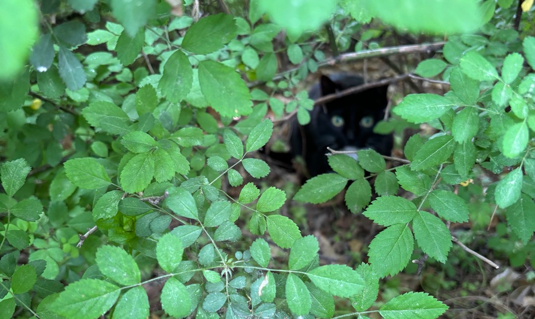 가끔은 이 덤불숲 근처를 지나가는 사람들이 '어? 고양이다~!'라며 까만 턱시도 고양이가 쫓아오는 걸 알려준다. 내 발걸음을 미처 따라오지 못해 몸을 드러내는 경우에 그렇다.