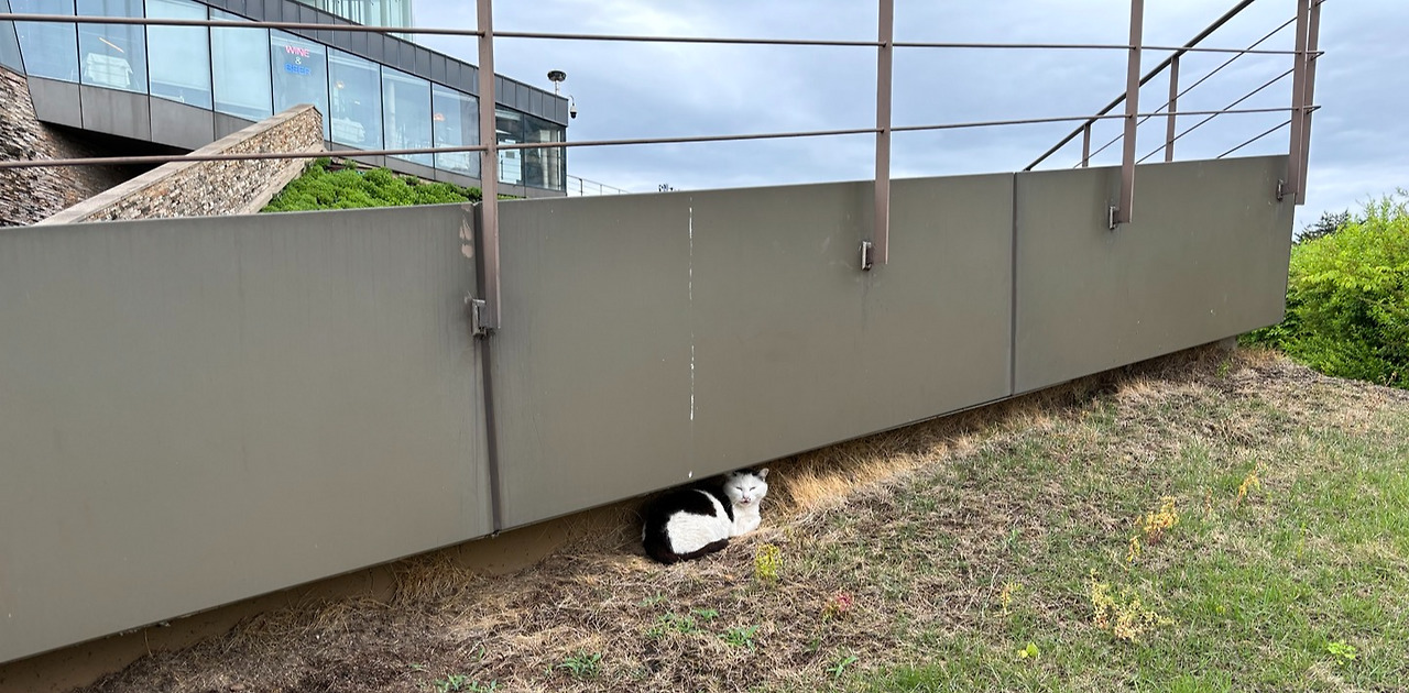 사랑이는 하늘 공원으로 올라가는 길 옆 구조물에 이렇게 숨어 자기를 찾아오는 사람을 기다린다. 그 모습이 짠해 보이지 않다면 거짓말일 것이다. 자기를 부르는 소리가 들리면 늘 대답을 야무지게 하는 사랑이지만 나도 모르게 더 크게 부른다.