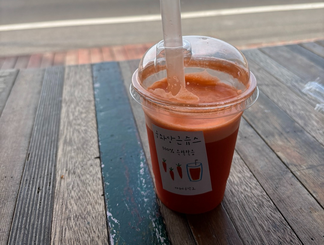 비교적 비자림 산책에 많은 시간이 걸리지 않아 다시 세화에 들러 우리의 시력 건강을 위한 100% 구좌 당근 주스를 카페공작소에서 마시고 집으로 돌아왔다. 저녁은 조카딸집에 돌아다니는 김치를 넣고 나에게 수석교사 대신 장금이로 불리는 김 선생의 황돔을 넣은 김치찜으로 결정!