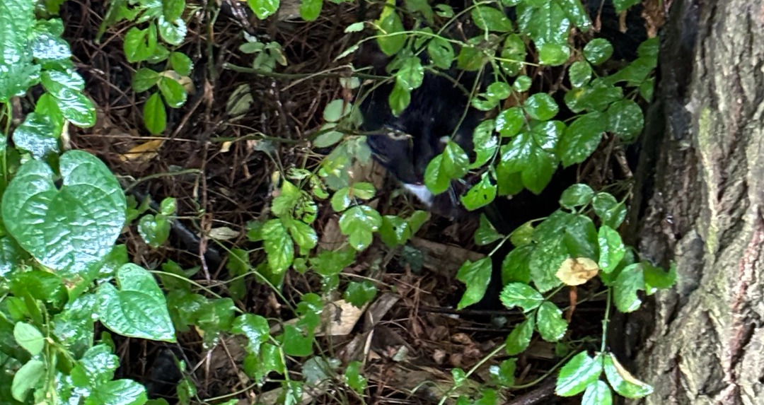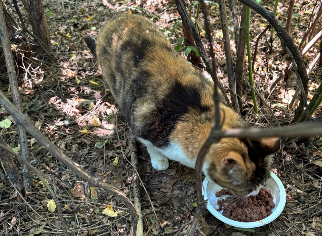 밥그릇에 가득 고인 빗물과 나뭇잎들을 털어내고 물휴지로 닦아 얼른 닭가슴살 하나와 캔을 꺼내 건넸다. 촉촉이 젖어 가며 밥을 먹는 녀석을 보다 이번에는 혹시나 하고 삼색이를 찾아 덤불숲을 살폈다.
