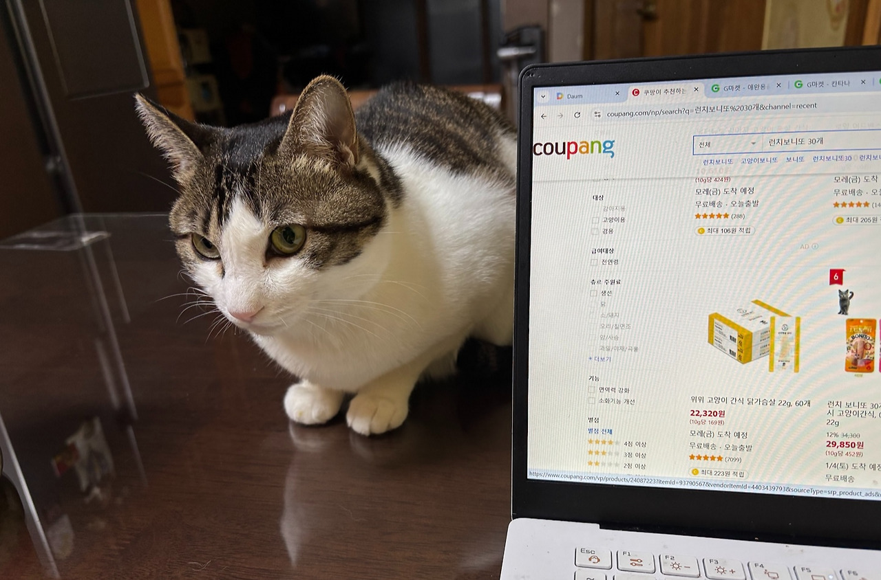 귀이개를 꺼내 까미를 살핀 선생님은 구내염은 끈적거리는 침을 흘린다면서 스트레스 증상이라고 하셨다. 밥은 잘 먹냐고 물으시길래 나리가 온 초기에는 200그램 정도 줄었다 다시 늘었다고 했다. 선생님은 나리의 임보 사실을 알고 계신다. 동물병원에 들러 어떻게 하면 둘의 합사를 잘 시킬 수 있는지 물었었기 때문이다.