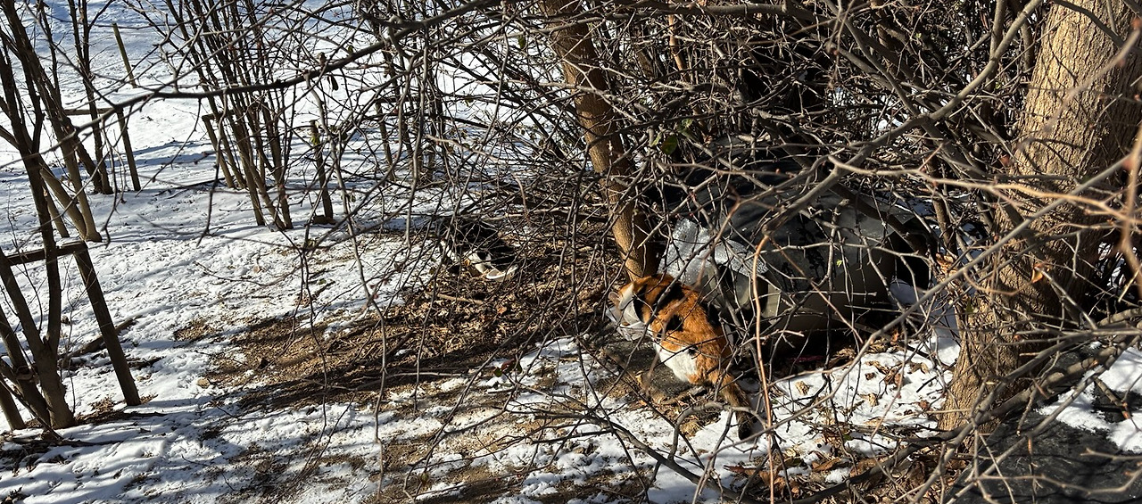 귀요미와 다롱이는 햇살이 나왔는데도 보이지 않더니 집에서 나온다. 건사료와 여분 캔을 보충하기 위해 겨울집에 손을 넣어보니 핫팩 덕인지 훈기가 있다. 그곳 고양이 겨울집 3개는 제법 일이 복잡하다. 나뭇가지에 눈을 찔리거나 안경이 벗겨지지 않도록 조심해서 작업을 해야 한다.