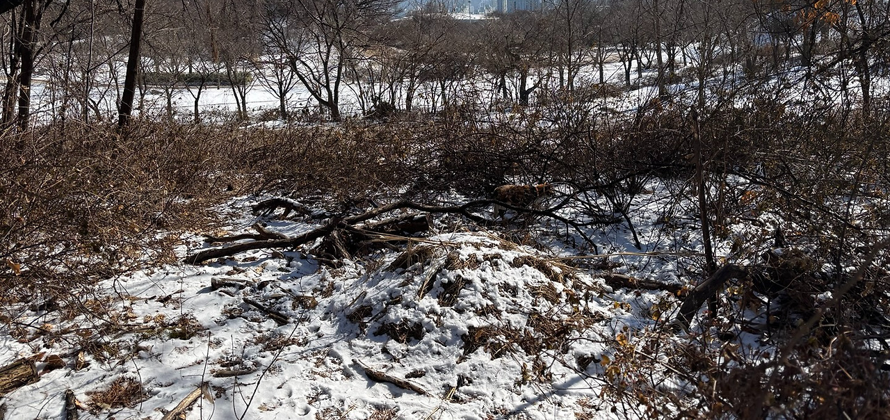 귀요미와 다롱이 그리고 구내염에 걸려도 몇 년째 잘 버티고 있는 검은 냥이가 있는 둔덕을 조심스럽게 올라갔다. 아직 눈이 쌓인 데다 비탈길이라 미끄럽다.