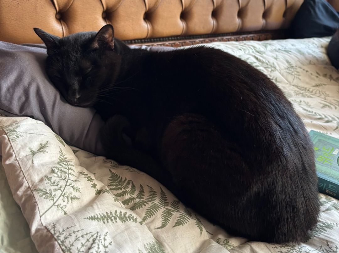 발치에 있던 까미가 두통약을 찾으러 일어나는 내 기척을 느꼈는지 슬금슬금 다가와 팔 아래로 고개를 파묻는다. 보송한 털을 문질거리니 부드럽다. 슬몃 웃음이 흘러나온다. 이게 고양이를 기르는 맛일까?