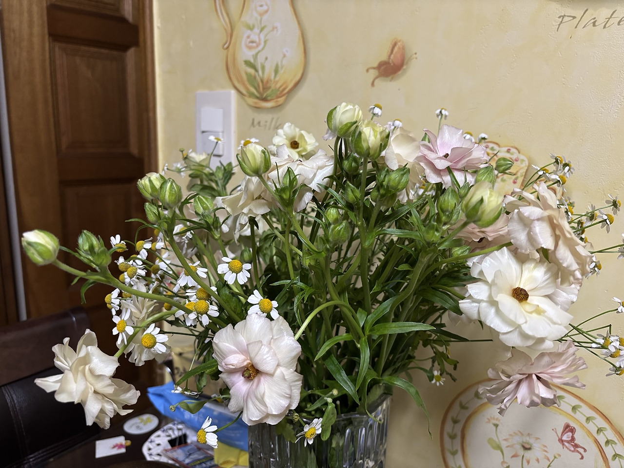 지난 토요일. 만나러 올 때마다 꽃을 선물해 주시는 분이 버터 플라이와 캐모마일 향이 난다는 마트리카리아라는 꽃 묶음을 굳이 송파까지 배달해 주셨다.