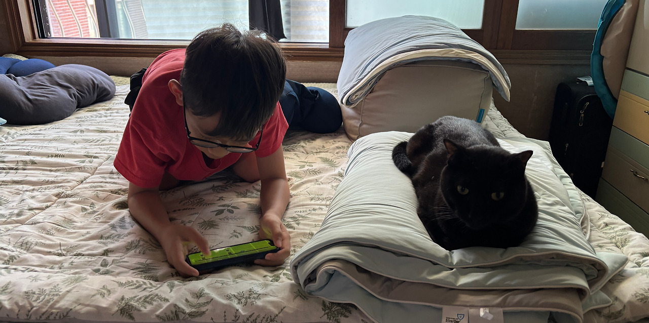 제주에 사는 할아버지 댁에서 여름방학을 보내고 우리 집 인근 아산병원 진료를 위해 조카 가족이 왔었다. 병원에 갈 때마다 우리 집이 숙소나 마찬가지였기에 사정상 큰 조카 손주와 내가 보내는 시간도 제법 있었다. 이번에도 조카 손녀인 한나는 병원에 가고 조카손주와 둘이 공원 해바라기 원에 갔다. 삼색이 녀석이라도 찾으려 매일 들르지 않을 수 없었기 때문이다.