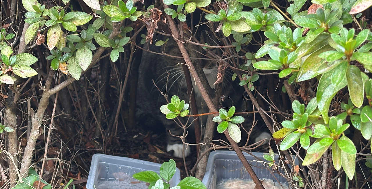 추석 당일 날 아침도 설거지와 뒷정리를 남편과 아들들에게 넘기고 공원으로 달려갔다. 비가 부슬거려 사람들이 많지는 않았다. 하지만 배고픈 고양이들은 여기저기 보였다. 나에게 닭가슴살을 얻어먹어 본 녀석들이 대놓고 뒤를 따라다녀 마음이 짠하면서도 바빴다.