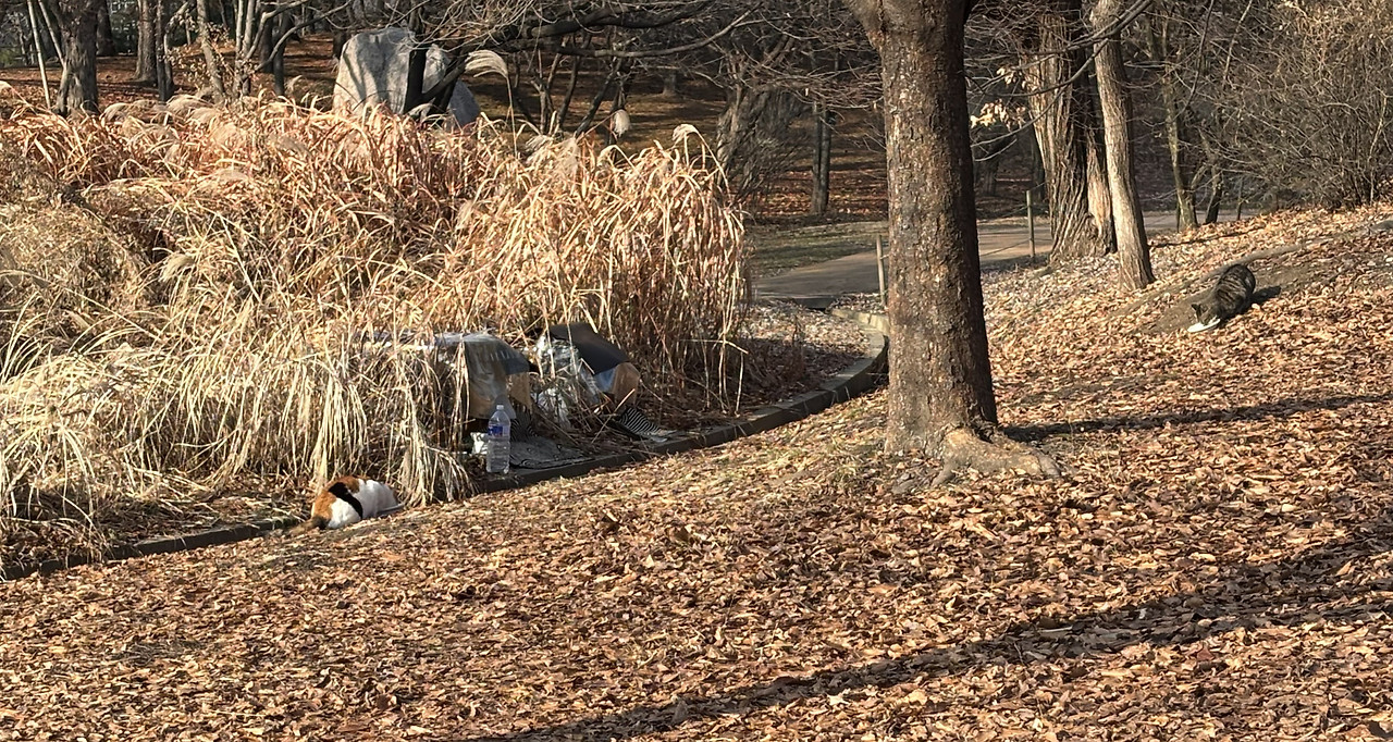 겨올, 사람도 마찬가지겠지만 공원에서 그 시간을 보내야 하는 고양이들에게도 혹독한 시간이다.