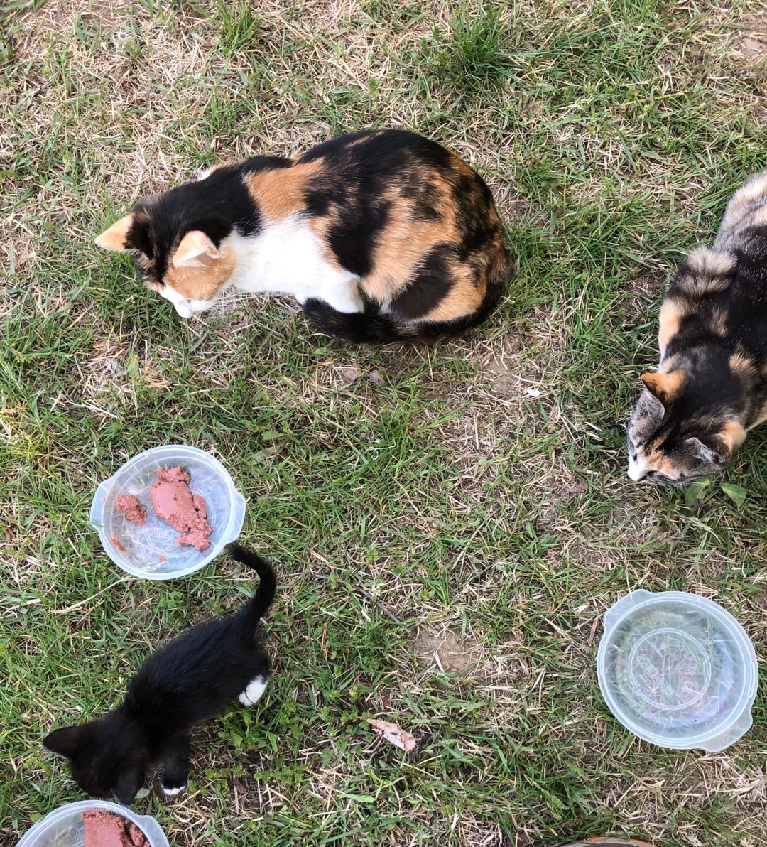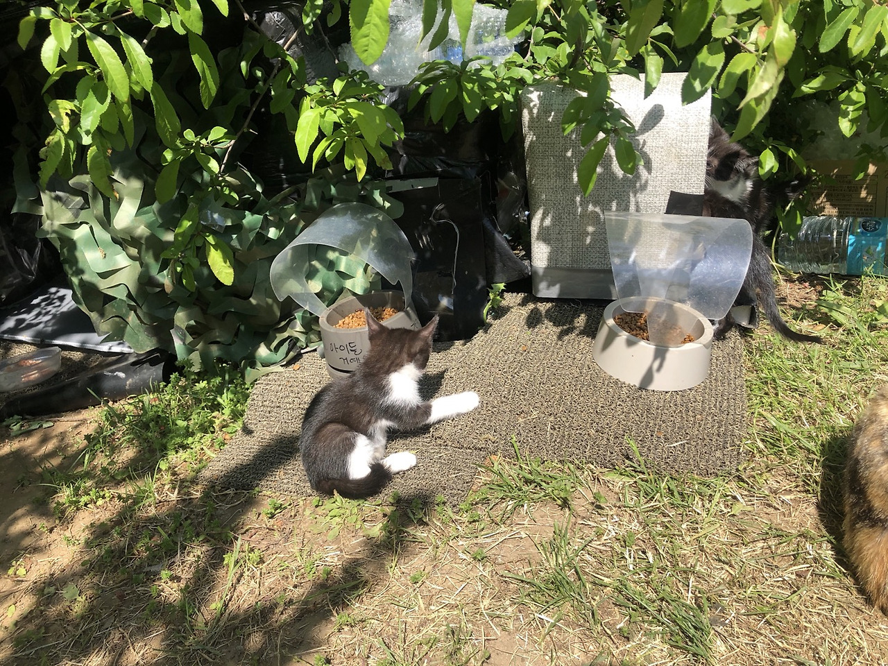아로의 남은 새끼 두 마리는 다행히 건강하게 자라고 있었다. 고등어까지 어디론가 사라지고 밥자리에는 이제 네 마리가 남았다. 아로 아미 자매 그리고 새끼 두 마리.