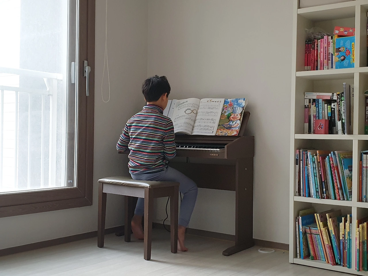 4. 피아노를 배우게 해서 아이 레벨에서 칠 수 있도록 유명한 곡의 쉬운 버전 악보를 검색해서 프린트해주고 칠 때마다 격려와 칭찬을 아끼지 않는다.