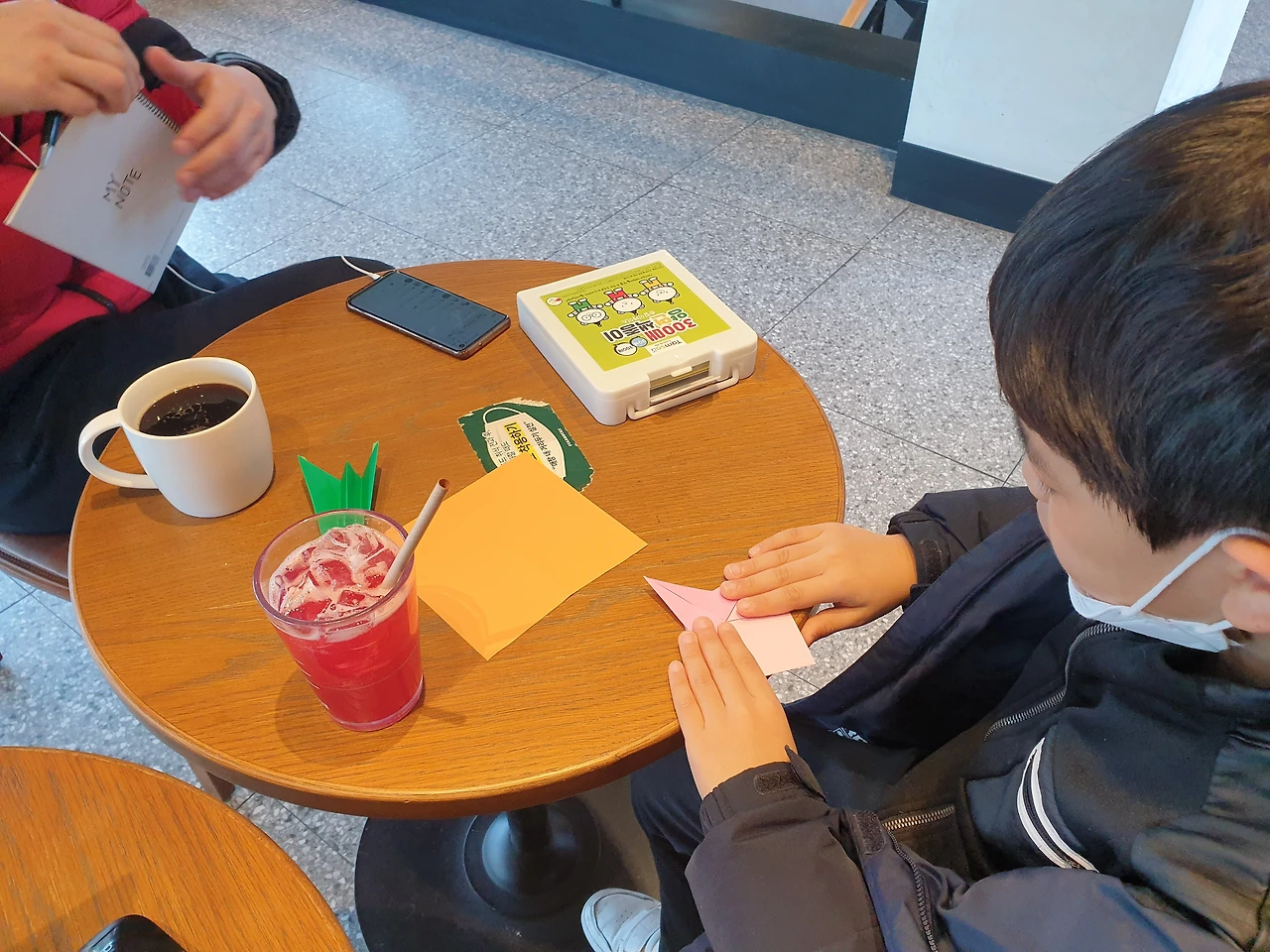 아들하고도 커피숍에 갈 수있다. 색종이와 필기도구만 있으면