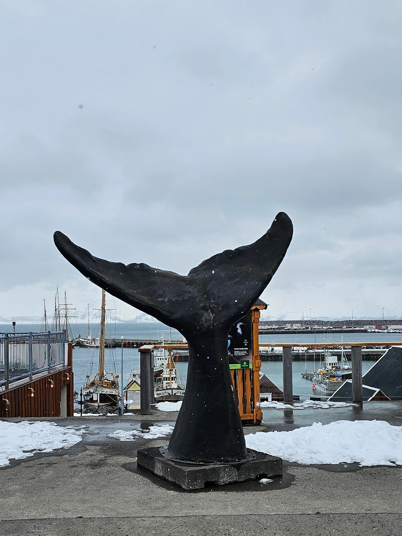 호텔 체크아웃 하고 나오는데 불안한 날씨. 오늘은 고래 보러 가는 날인데 눈과 바람이 차다. 예약은 했고 고래관광 회사 연락도 없길래 후사빅으로 향했다. 거의 도착할 때쯤 고래관광 회사 전화. 날씨로 인해 예약이 취소... 오케이. 그래도 거의 다 도착했길래 우선 가기로. 역시 눈발도 도 강해지고, 바람도 장난 아니다.