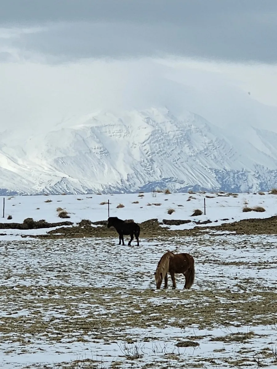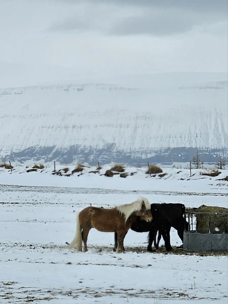 실물로 보고 싶었던 아이슬란드 말. 지금까지 익숙하게 본 말에 비해 작은데 당나귀보다도 작다고 해야 하나? 너무 귀여움. 이동 중 목장들이 있어 계속 볼 수 있어서 눈이 행복해짐.
