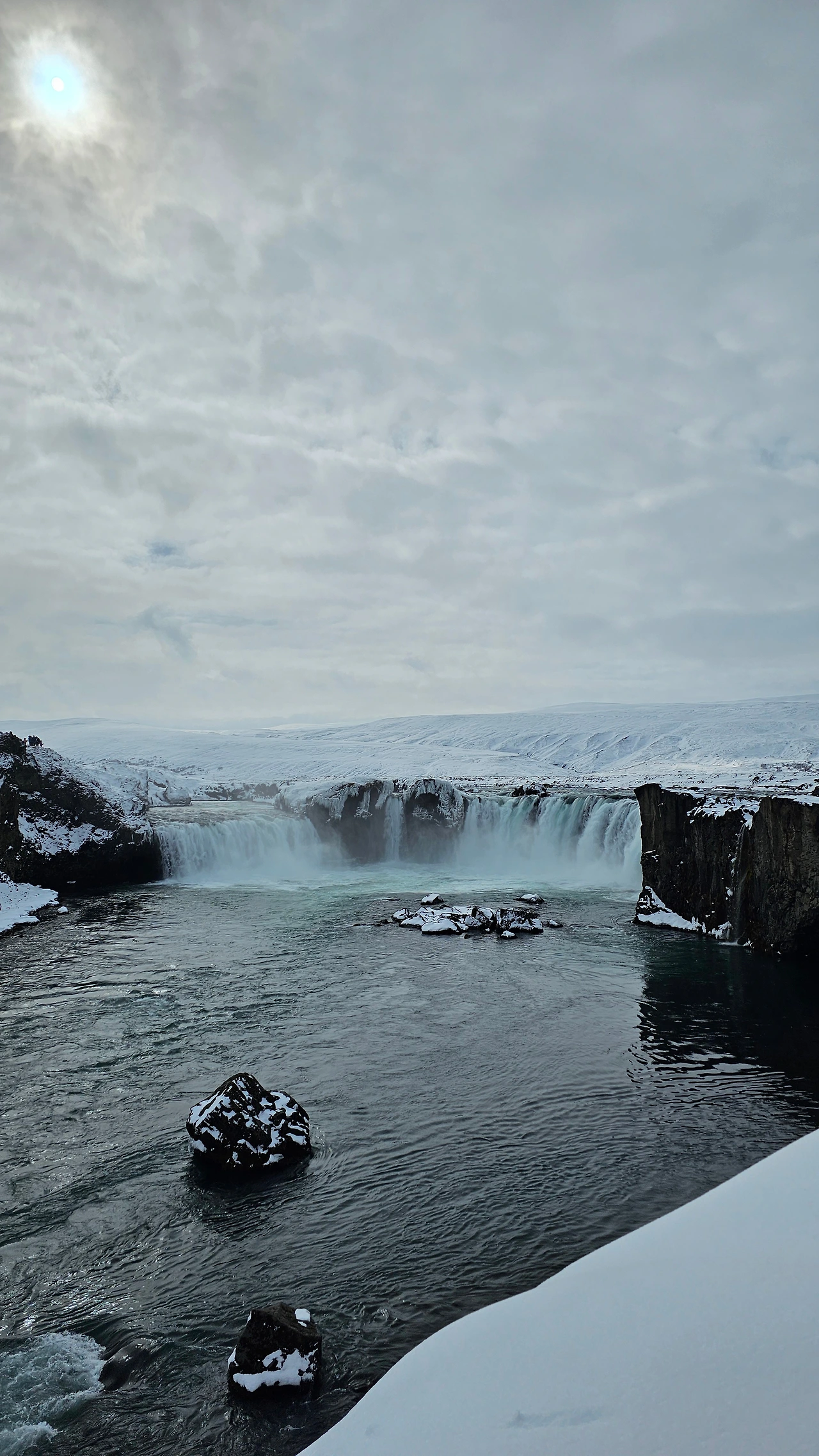 빙 둘러 한 바퀴 도면 보는 위치에 따라 다른 매력이 있다. 다행히 눈이 아직 안 녹아서 더 매력적이었던 고다포스.