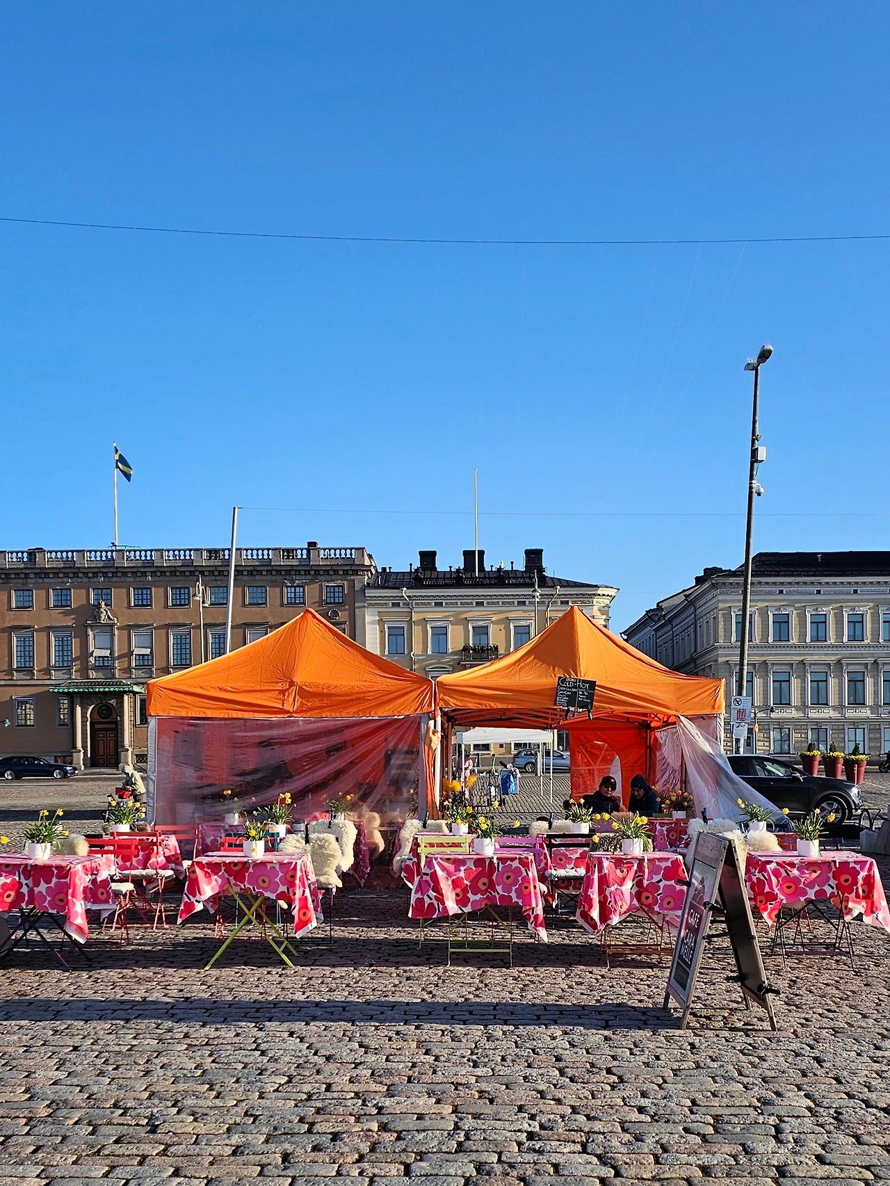 헬싱키 마켓광장. 시장카페 테이블크로스도 마리메꼬.