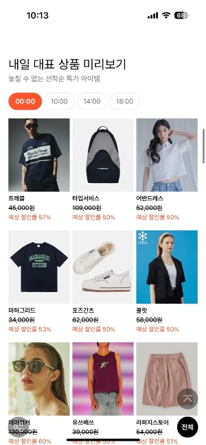 오늘 하루 끝나지 않고, 다음날 할인하는 대표 상품을 보여주는 무신사, 할인 행사에 한번 들어간 소비자를 다음날까지 무신장 기대하게 만듦으로써 행사가 끝날 때까지 알아서 오게끔 하는 이 구성이 이제 무섭다.