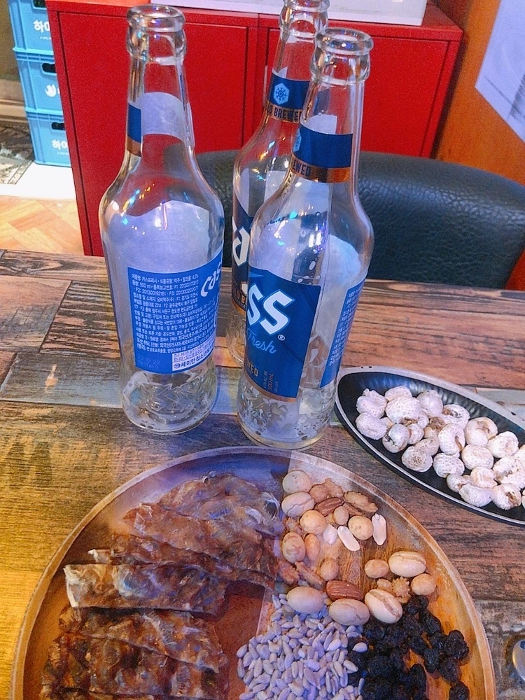 집에서 엄마랑 치맥으로 캔맥 2개를 먹었으니 내가 이 술집에서 버틸 수 있는 맥주는 고작 3병 정도이리라.